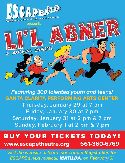 ![]() | Escape Theatre presents Li'l Abner - This upbeat, funny musical follows the lovable characters of Dogpatch USA as they confront a government notice that their town is to be used as an atomic bomb testing ground. You'll enjoy foot-stomping country tunes, witty satire, and the famous Sadie Hawkins Day race. Website: https://www.escapetheatre.org/ |