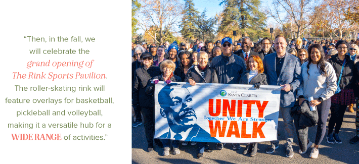 Join us for one of the most inspirational city events that grows in size every year: the annual Dr. Martin Luther King, Jr. Unity Walk. This year's walk will take place on MLK Day, Monday, January 19, 2026, at 9am in Central Park. A brief program will highlight young voices from our community, musical performances and more. After the program, join your neighbors, family and friends for the walk to continue the conversation. As we move further into the year, we can look forward to the Santa Clarita Cowboy Festival, SENSES Block Parties, Celebrate and Concerts in the Park presented by Logix Federal Credit Union. For more information, visit santaclarita.gov.